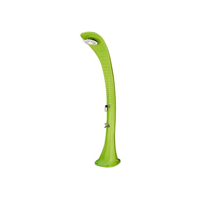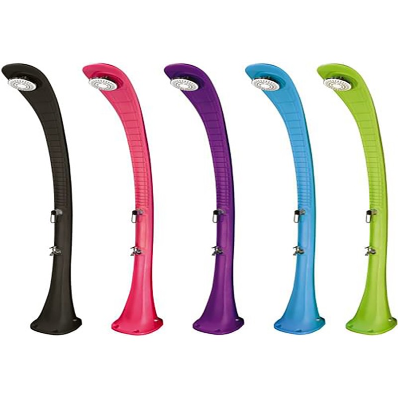 Cette douche extérieure en PEHD s’accordera à votre extérieur grâce à ses 5 coloris proposés et sublimera ce dernier avec ses motifs moulés. En plus de sa très grande contenance (32L), elle utilise l’énergie du soleil. Son mitigeur garanti une sélection précise de la température (chaud et froid). 2 en 1, elle assure la douche intégrale à l’aide de la pomme de douche intégrée effet pluie orientable et elle permet également de se rincer uniquement les pieds avec le rince-pied. De plus, sa base est élargie pour plus de stabilité. Elle s’installe facilement et se branche à toutes les arrivés d’eau.