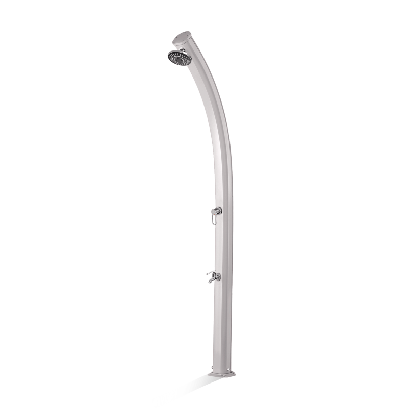 Cette douche extérieure en aluminium sublimera vos abords de piscine grâce à sa courbe moderne et design disponible en 2 coloris avec son réservoir de 33L. Son mitigeur garantis une sélection précise de la température (chaud et froid), cette dernière est chauffée grâce à l’énergie solaire. 2 en 1, elle assure la douche intégrale à l’aide de la pomme de douche intégrée effet pluie orientable et elle permet également de se rincer uniquement les pieds avec le rince-pied. Elle s’installe facilement et se branche à toutes les arrivés d’eau.