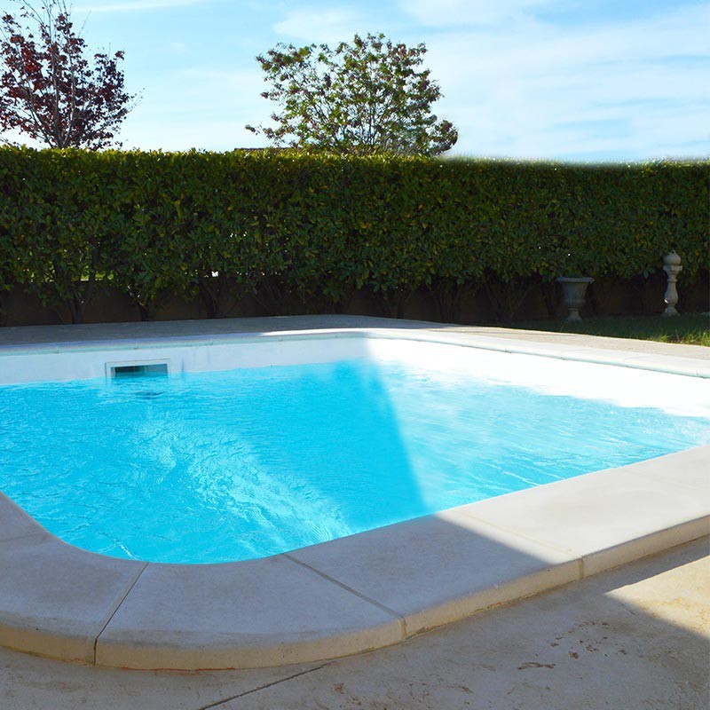 Margelles : En pierre reconstituées livrées en kit pour un colisage correspondant au modèle de piscine commandé.