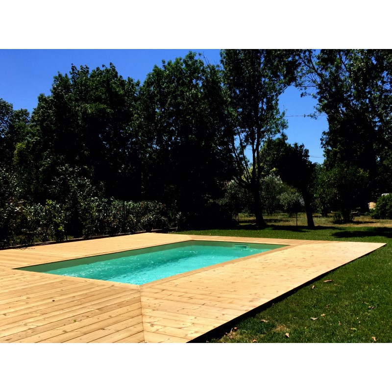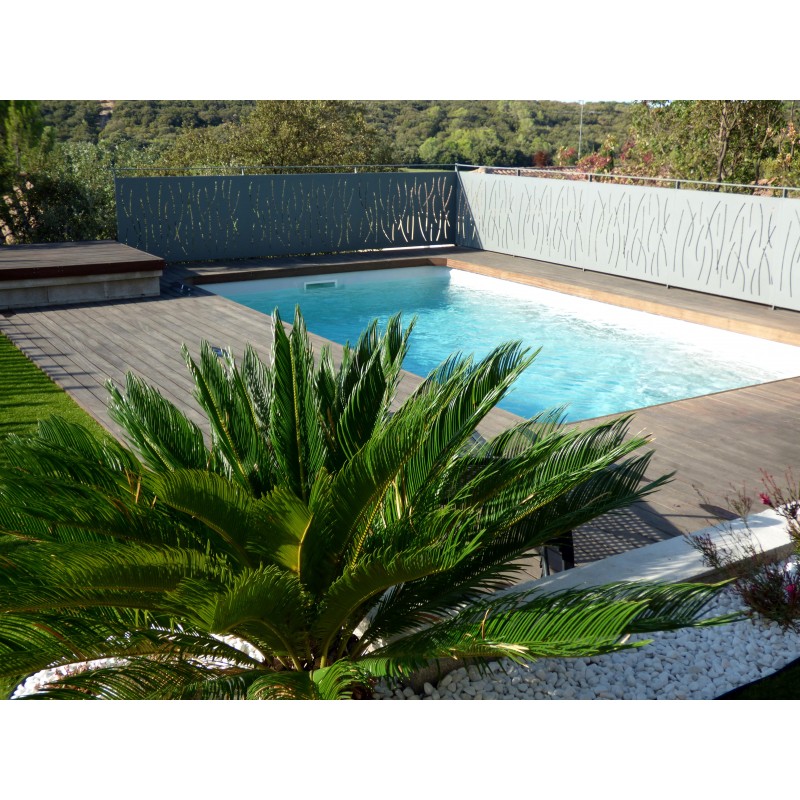 La piscine contemporaine 600 est une forme rectangulaire de 6 M de long et 3,50 M de large avec un fond plat.