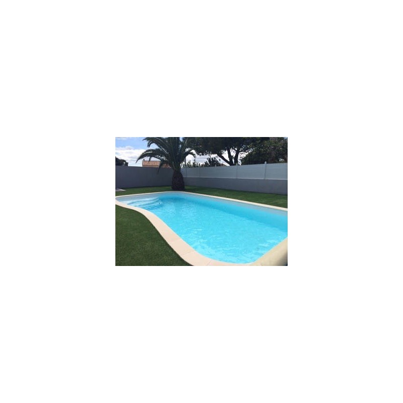 La piscine EXOTIQUE 800 est une forme libre de 8M de long et de 4M de largeur avec un fond plat. Sa profondeur est de 1,50 M (hors d’eau) soit environ 1,40 M ligne d’eau.