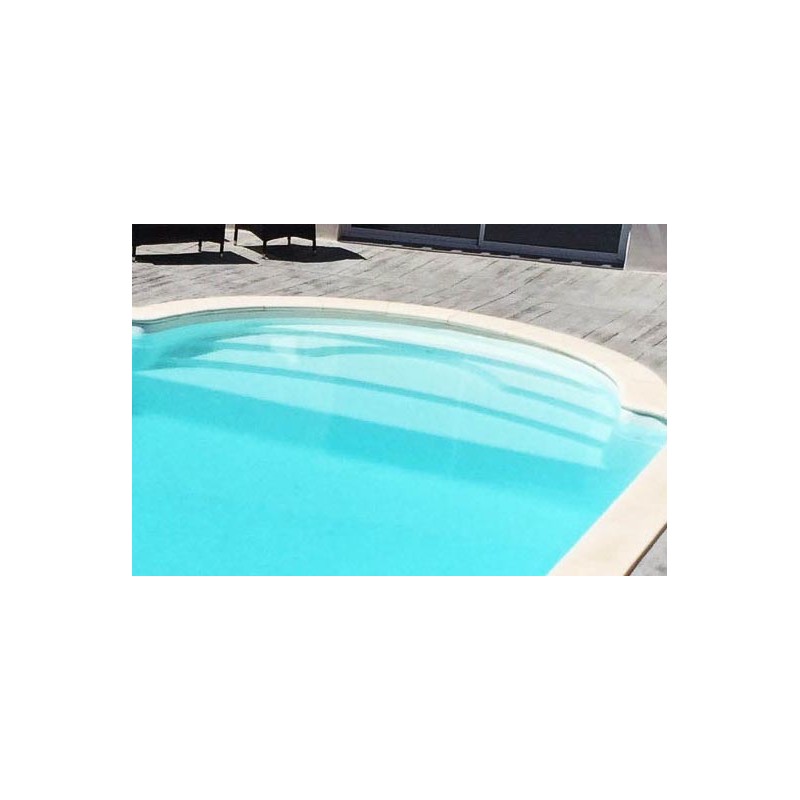 Piscine coque polyester mesurant 8,10 m* de long (escalier inclus) et 4 m* de large. Ce modèle vous est proposé en version fond progressif avec une profondeur hors d’eau allant de 1,10M* à 1,70M* (modèle disponible en version fond plat). Avec ses lignes arrondies, ce bassin séduira toute la famille pour son côté convivial, ludique et relaxant. Cette piscine est dotée d’un escalier en forme de demi-cercle centré sur la largeur (dis « escalier roman ») faisant également office de plage intégrée. L’ergonomie de cette plateforme avec des marches antidérapantes, a été étudié pour vous permettre à la fois d’accéder tout en douceur dans l’eau et de vous faire profiter d’un véritable espace où vous pouvez bronzer, discuter, jouer avec les enfants en position semi-immergée. Pour encore plus de plaisir et de relaxation, vous pouvez choisir l’option balnéo. Ainsi nous installerons 3 buses de massages situées sur le creux de la troisième marche qui se révélera être une des places des plus confortables. Même si l’escalier est intégré à la coque, visuellement, ce dernier est « extérieur », et se présente à vous comme une invitation à la baignade. Sa disposition en arc de cercle à l’entrée de la piscine rappelle les grands bains romains des stations thermales construites dans l’antiquité. Grâce à sa pente inclinée, vous bénéficiez sur ce bassin d’un « petit bain » côté escalier descendant au fur et à mesure sur un plus grand bain qui ravira les amateurs de plongeons qui auront plus d’aisance pour effectuer leur immersion aquatique.