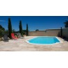 Margelles : En pierre reconstituées livrées en kit pour un colisage correspondant au modèle de piscine commandé.