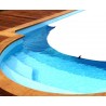 Piscine coque polyester mesurant 9,10 m* de long (escalier inclus) et de 4 m* de large. Ce modèle vous est proposé en version fond progressif avec une profondeur hors d’eau allant de 1,10M* à 1,80M* (modèle disponible en version fond plat). Avec ses lignes arrondies, ce bassin séduira toute la famille pour son côté convivial, ludique et relaxant. Cette piscine est dotée d’un escalier en forme de demi-cercle centré sur la largeur (dis « escalier roman ») faisant également office de plage intégrée. L’ergonomie de cette plateforme avec des marches antidérapantes, a été étudié pour vous permettre à la fois d’accéder tout en douceur dans l’eau et de vous faire profiter d’un véritable espace où vous pouvez bronzer, discuter, jouer avec les enfants en position semi-immergée. Pour encore plus de plaisir et de relaxation, vous pouvez choisir l’option balnéo. Ainsi nous installerons 3 buses de massages situées sur le creux de la troisième marche qui se révèlera être une des places des plus confortables. Même si l’escalier est intégré à la coque, visuellement, ce dernier est « extérieur », et se présente à vous comme une invitation à la baignade. Sa disposition en arc de cercle à l’entrée de la piscine rappelle les grands bains romains des stations thermales construites dans l’antiquité. Grâce à sa pente inclinée, vous bénéficiez sur ce bassin d’un « petit bain » côté escalier descendant au fur et à mesure sur un plus grand bain qui ravira les amateurs de plongeons qui auront plus d’aisance pour effectuer leur immersion aquatique.
