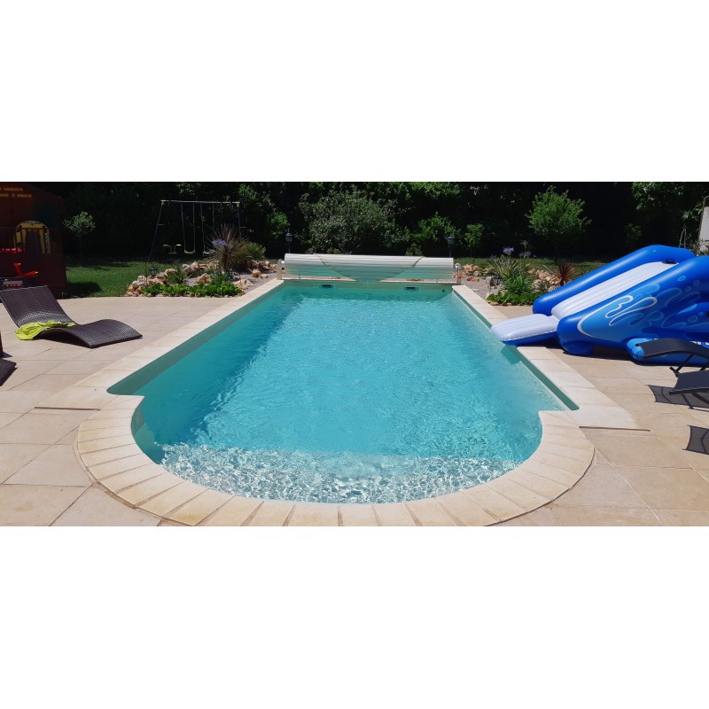 Margelles : En pierre reconstituées livrées en kit pour un colisage correspondant au modèle de piscine commandé.