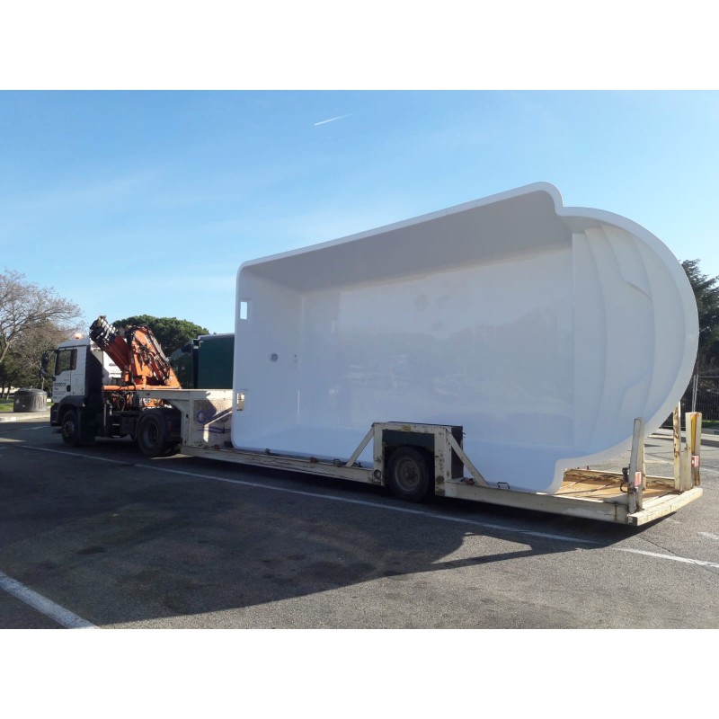 Pour être livrée jusqu’à chez vous, une piscine coque doit être transportée sur un camion semi-remorque doté d’une grue. Le bassin mis sur champ dans la remorque sera ainsi expédié en toute sécurité.