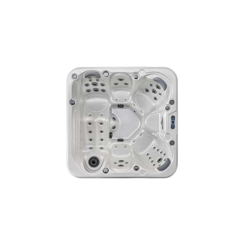 Le spa SUTHERLAND 200-P559 est un spa 5 places carré aux bords arrondis. Il est composé de 1 banquette adaptée aux personnes mesurant entre 1,50 et 1,80 M et de 4 places assises dont 2 assises droites + 2 basses, de manière à s’ajuster aux différentes morphologies. Il s’agit d’un spa carré aux angles arrondis qui mesure 200 x 200 cm et d’une profondeur de 93 cm. Sa forme, permet de l’intégrer dans différents environnements tout en respectant l’harmonie du lieu.