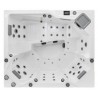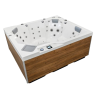Le spa SANTORIN est un spa au design épuré composé de 5 places. Il est composé de 1 banquette adaptée aux personnes mesurant entre 1,50 et 1,80 M et de 4 places assises dont 2 assises droites + 2 basses, de manière à s’ajuster aux différentes morphologies. Il s’agit d’un spa rectangulaire aux angles droits qui mesure 210 x 180 cm et d’une profondeur de 93 cm. Sa forme, permet de l’intégrer dans différents environnements tout en respectant l’harmonie du lieu.
